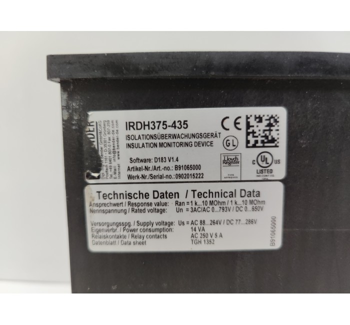 BENDER IRDH375B-435 A-ISOMETER INSULATION MONITORING DEVICE B91065000
