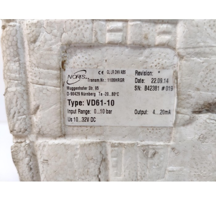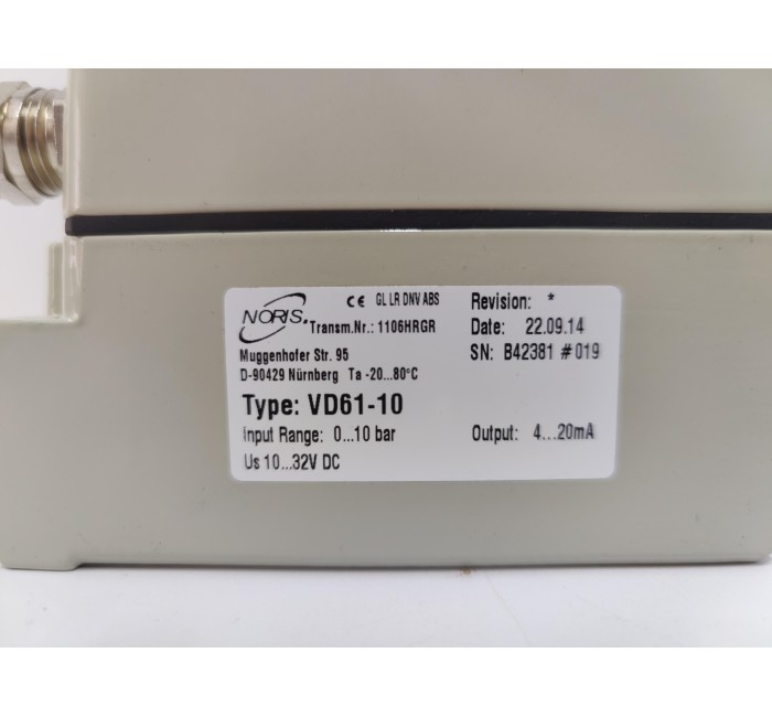 NORIS VD61-10 PRESSURE TRANSMITTER 1106HRGR