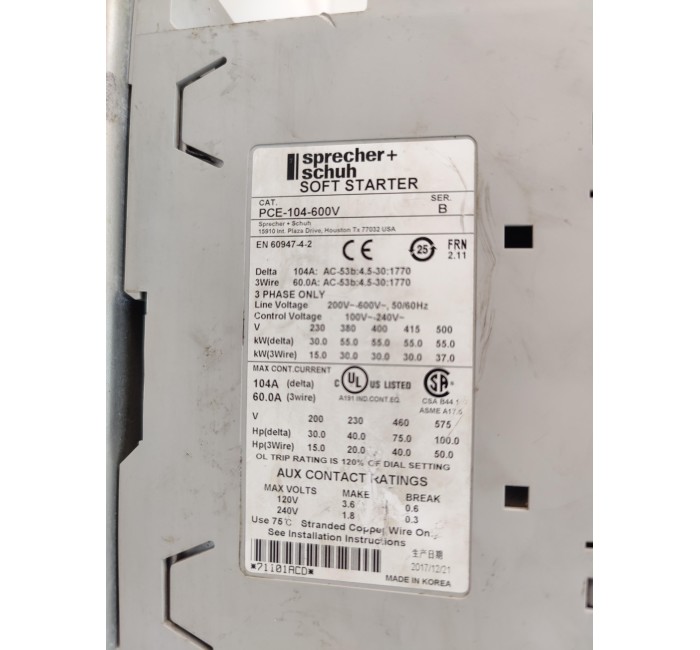 SPRECHER+SCHUH PCEC-104-600V-120V SOFT-STARTER